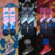 欧文7袜子鸳鸯高筒kyrie七音乐电影艺术蓝粉中筒袜Irving德鲁大叔
