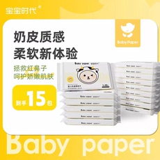 宝宝时代木浆亲肤温和面巾纸婴儿乳霜纸15包奶皮质感柔软保湿纸巾