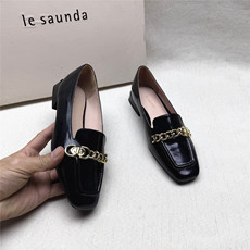 羊皮 34-36/ 莱尔斯丹Le saunda 链子方头浅口单鞋女低跟休闲皮鞋