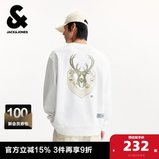 【NBA联名款雄鹿队】杰克琼斯男装春季卫衣胶印图案字母刺绣宽松