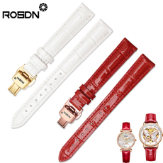 劳士顿手表带男女士真皮原装款Rosdn蝴蝶扣防水牛皮表链带16/20mm