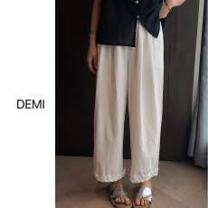 MISS RUILI定制 新款简约休闲裤女宽松直筒显瘦木耳花边阔腿F1933