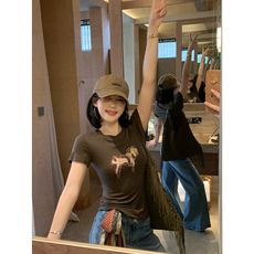pp虎现''蝴蝶结''夏季新品韩系小众波点短款T恤S26330