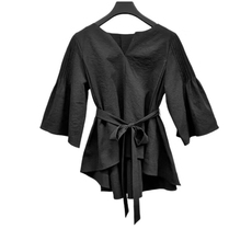 2026春夏新款女装S·D七分袖V领衬衫收腰显廋休闲百搭不规则衬衣