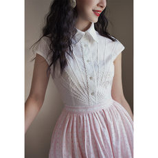 Chings 法式复古小尖领包肩小飞袖上衣 收腰蕾丝花边显瘦白棉衬衫