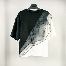 S·D女夏季新款高端气质时尚显瘦撞色拼接棉短袖T恤上衣25220102