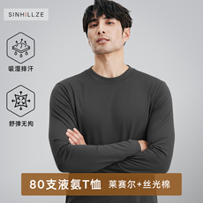 80支液氨莱赛尔棉长袖T恤男轻奢高端纯色打底衫2026新款秋季薄款