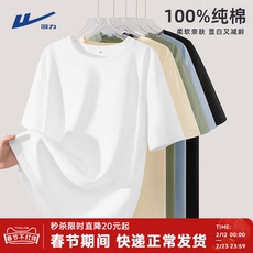 回力纯棉短袖t恤男夏季基础款纯白色二本针冰丝重磅内搭正肩体恤Y