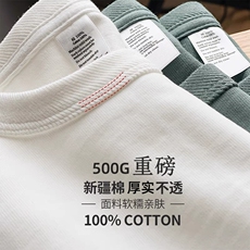 新疆棉 500G重磅纯棉长袖t恤男女日系秋冬卫衣厚实不透打底上衣