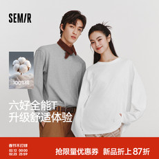 [商场同款]森马长袖T恤男纯棉打底衫2025春秋新款纯色内搭情侣款