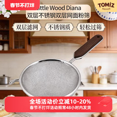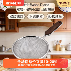 TOMIZ富泽进口Little Wood18-8双层不锈钢网面粉筛木柄