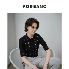 【KOREANO】春秋黑色提花logo针织衫 ZK8014G