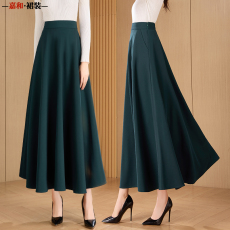 2025新款秋冬百搭纯色墨绿色半身裙长款休闲高腰A字大摆仙女长裙