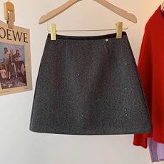 羊毛半身裙女2024秋冬新款高腰小个子亮片粗花呢包臀呢子a字短裙