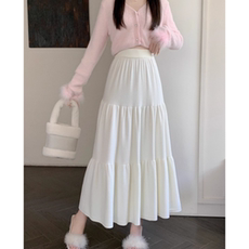 白色半身裙秋冬2025年新款高腰a字显瘦小个子伞裙百褶垂感糯米裙