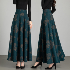 2025秋冬新款气质印花半身裙女百搭高腰大码遮肉显瘦a字大摆长裙