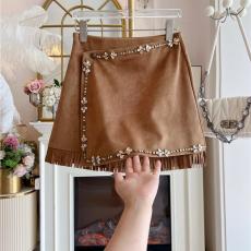 美拉德重工水钻半身裙女秋冬季新款复古显瘦流苏短款a字裙半身裙
