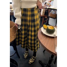 落落狷介 半身裙女秋冬黄色格子半身A字裙2025新款毛呢小个子冬裙