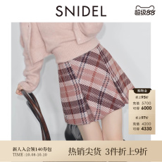 SNIDEL秋冬款高腰经典格纹压褶A字短款半身裙SWFS244086