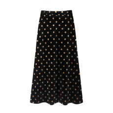 彩系~2025秋冬新款高腰波点金丝绒半身裙A字长裙复古优雅中长裙子