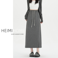 深灰色糯米裙女秋冬季抽绳高腰a字运动长裙气质包臀针织半身裙潮