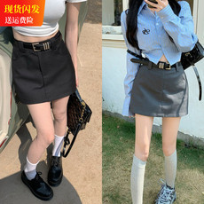 美式复古半身裙灰色大码腰带西装裙百搭显瘦a字包臀裙甜辣短裙秋