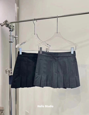 黑色百褶裙设计感a字显瘦短裙韩系假口袋西装面料高腰半身裙女夏
