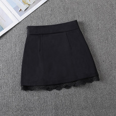 NEVA HU黑色花边拼接半身裙女包臀a字裙中低腰短裙百搭气质裙子