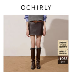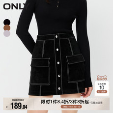 【轻奢珠片纱】欧时力 坑条毛织半身裙女2023新款冬装高腰a字短裙