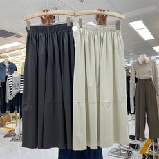 2023春秋新款短裙子女装大码半身裙a字百褶PU皮裙防走光裤裙伞裙