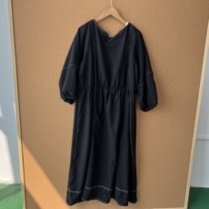 B2-174春夏设计感明线小V领连衣裙时尚宽松舒适中长款A字裙H25-9