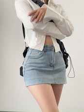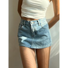 弹力修身毛边半身裙女防走光带内衬a字包臀短裙夏新款显瘦牛仔裙
