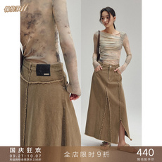 苹果的生活家|四季担当 做旧复古感长裙后开衩A字牛仔半身裙