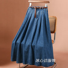 林乔芝2025新款女士秋季长款牛仔半身裙气质a字裙复古休闲半裙