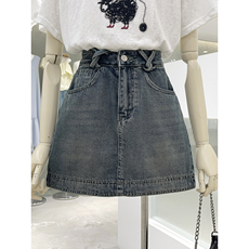 美式复古灰色牛仔半身裙女2025秋季防走光显瘦辣妹A字包臀短裙裤