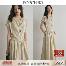 POPCHRIO欧可芮◆山系松弛感荡领小飞袖收腰连衣裙显瘦A裙子女春