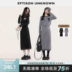 紫涵莱赛尔灰色假两件长袖上衣a字半身裙上下两件套装女春季新款