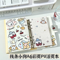 原创可爱小狗PU皮质活页本笔记本子A6学习记事本可拆卸日记手账本