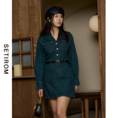 西町村屋牛仔短款连衣裙女春秋季新款复古港风长袖裙子AA9502011