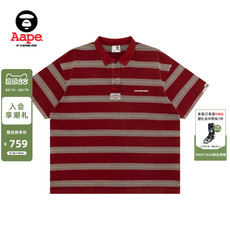 Aape旗舰店男装春夏美式复古学院风字母刺绣条纹POLO衫1892XXQ