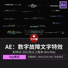 ae模板 24个毛刺文本失真故障文字特效全屏标题动画Ae字幕模版