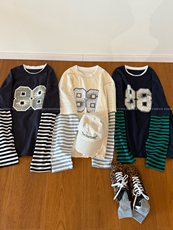 韩明星都在穿的设计师款!am* 袖子条纹拼接全棉长袖T恤包邮