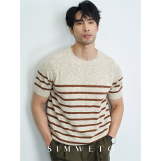 夏季绅士新品 细条纹设计感圆领针织T恤修身透气百搭休闲短袖冰丝