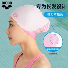 arena阿瑞娜新品简约泳帽女款不勒头护耳长发硅胶防滑游泳帽