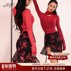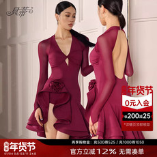 贝蒂2025新款拉丁舞国标舞服跳舞上衣长袖舞衣烂花丝绒连体服BD69