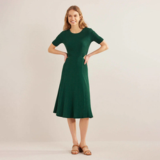 英伦BD 女款 圆领镂空罗纹短袖针织中长连衣裙 C734