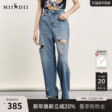 谜底破洞牛仔裤女2024年夏新品复古BF风亲肤透气直筒裤242MK0614