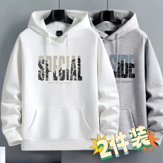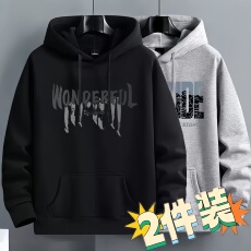 2件装加绒加厚男士卫衣套头圆领长袖T恤薄款宽松上衣青年外套潮