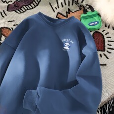冬季加绒保暖羊羔绒套头卫衣男ins美式宽松休闲加厚打底衫男外套