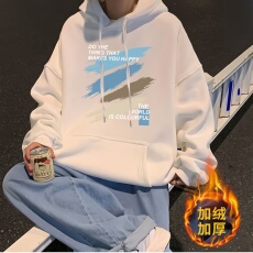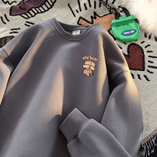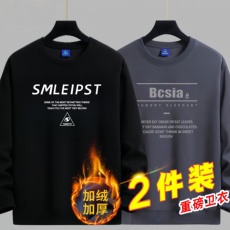 花花公子秋冬加绒卫衣男套头重磅青年宽松大码圆领长袖内搭打底衫